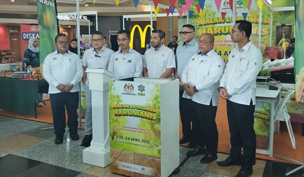 Ketua Pengarah FAMA Abdul Rashid Bahri merasmikan program Jualan dan Promosi Harumanis di bangunan Busana@Menara MARA,hari ini. Foto RTM